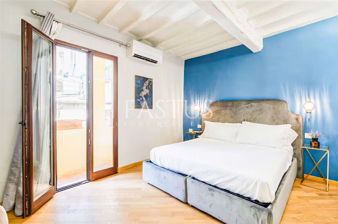 L’abitazione si distingue per ambienti generosi, ben proporzionati e armoniosamente collegati, pensati per garantire una vivibilità fluida e piacevole. La zona notte accoglie tre camere matrimoniali, tutte silenziose e raffinate, ideali sia come camere principali sia come spazi versatili da destinare a studio o area ospiti. Una delle camere gode di un balconcino privato, un elemento particolarmente apprezzabile in un contesto storico, che offre uno sfogo esterno riservato e arricchisce ulteriormente il valore dell’immobile.