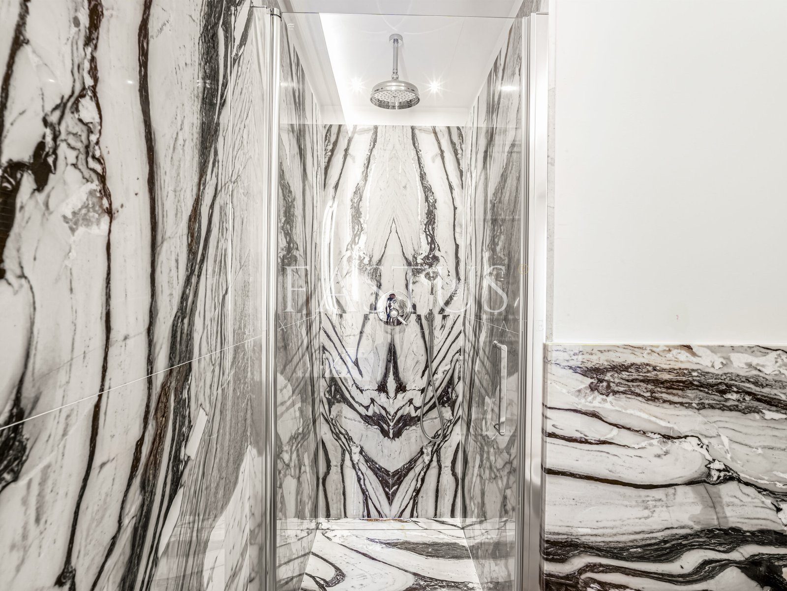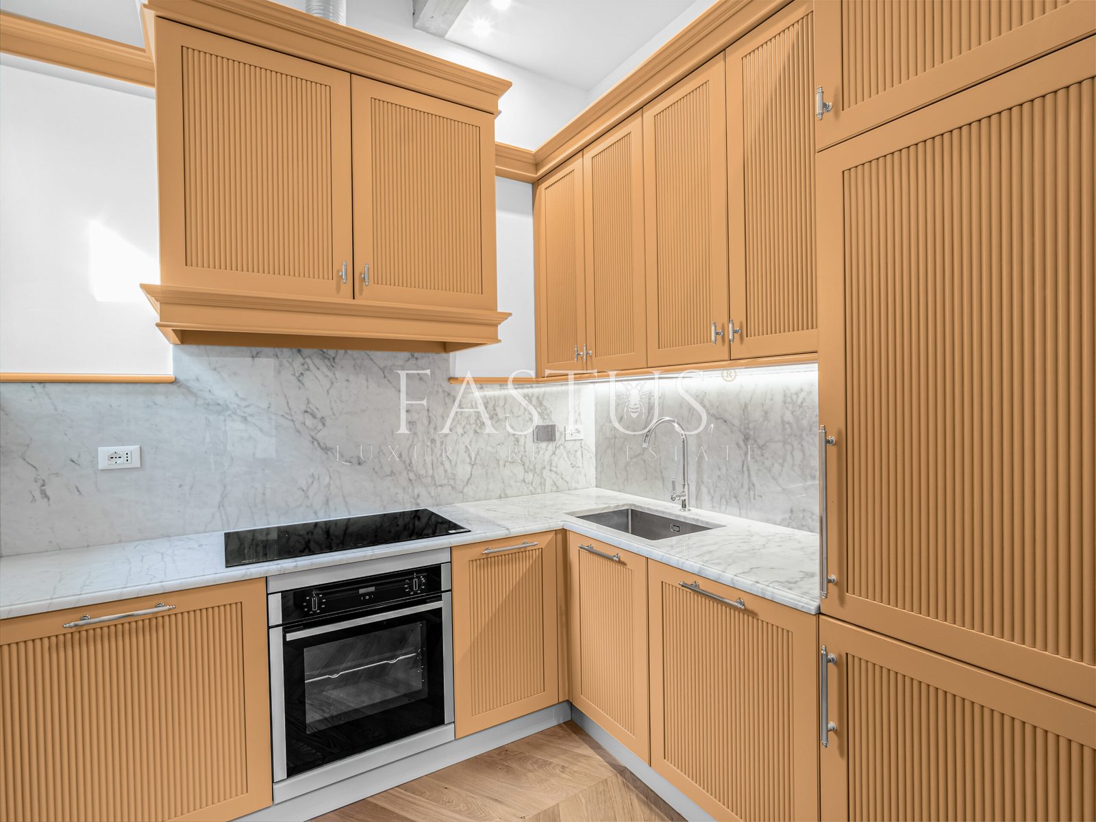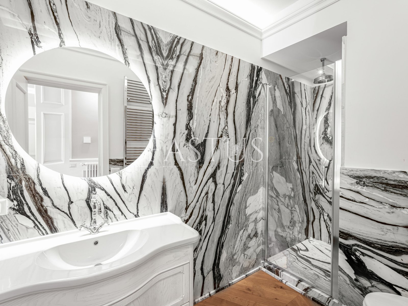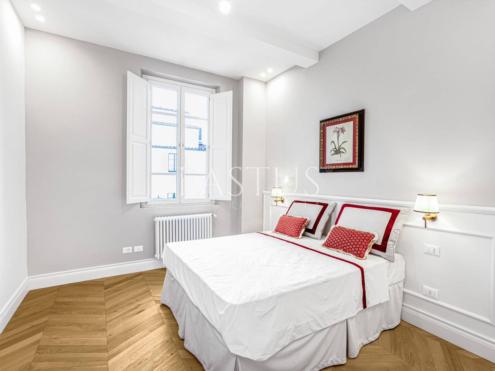 Le camere da letto sono autentiche suite, curate nei minimi dettagli per offrire il massimo del comfort e della privacy. Spaziose e silenziose, sono arredate con armadiature su misura e impreziosite da finiture di pregio. Una delle camere, in particolare, si distingue per la presenza di un raffinato bagno en suite e una terrazzina privata che si affaccia su un cortile interno silenzioso e verde, offrendo un angolo riservato di pace nel cuore della città. Gli altri bagni, anch’essi realizzati con materiali pregiati come marmi naturali e dotati di finiture di design, completano l’esperienza di comfort e lusso.