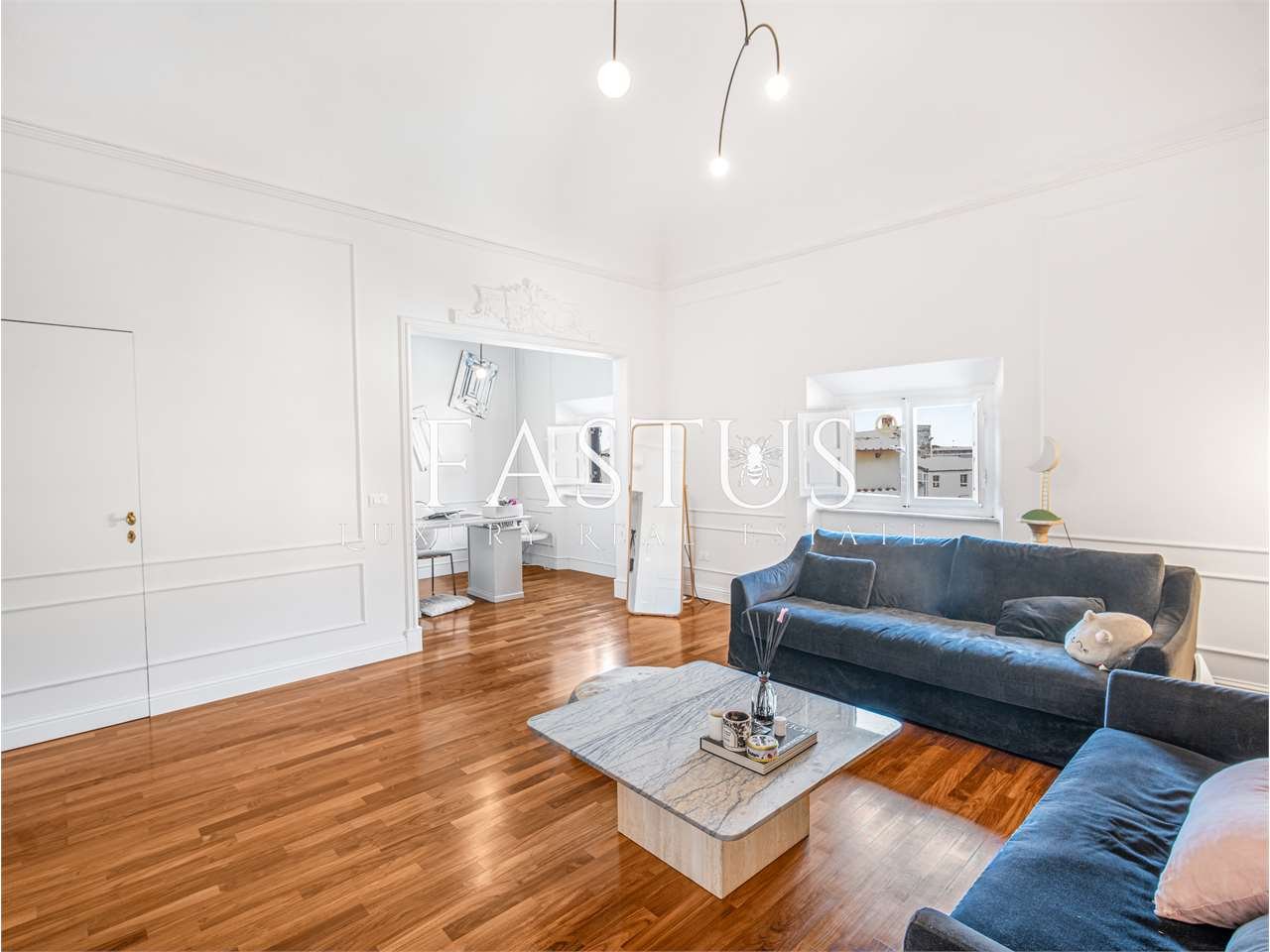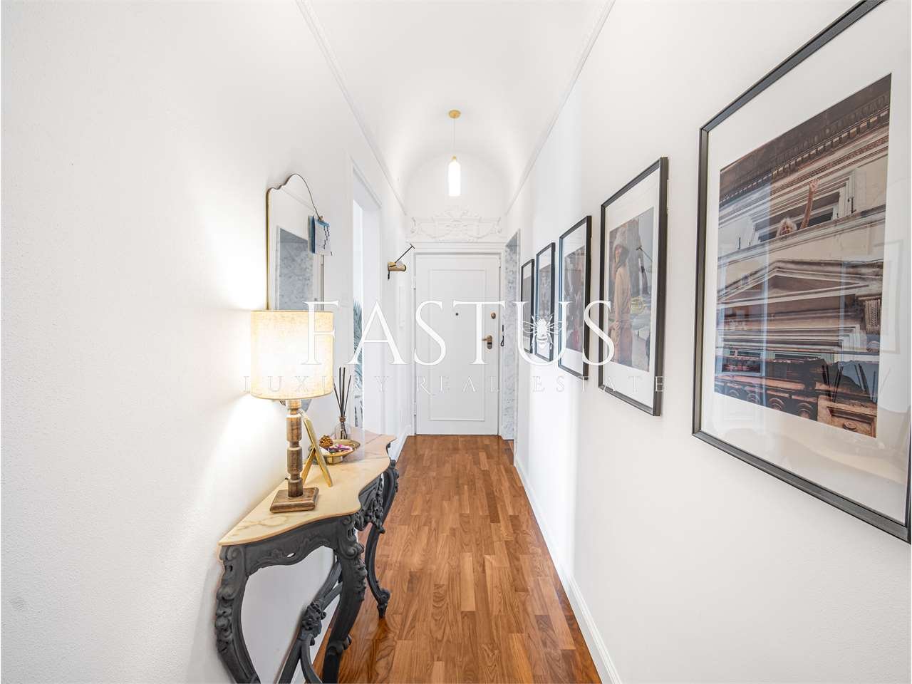 Il palazzo, condominio affrescato con dettagli originali d’epoca, presenta elementi di grande pregio come boiserie, pavimenti in teak e marmo di Carrara, che impreziosiscono ogni ambiente con una bellezza senza tempo.