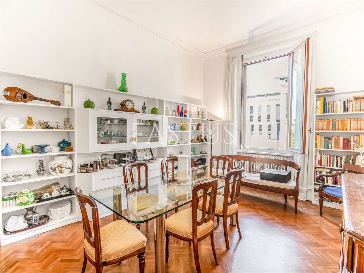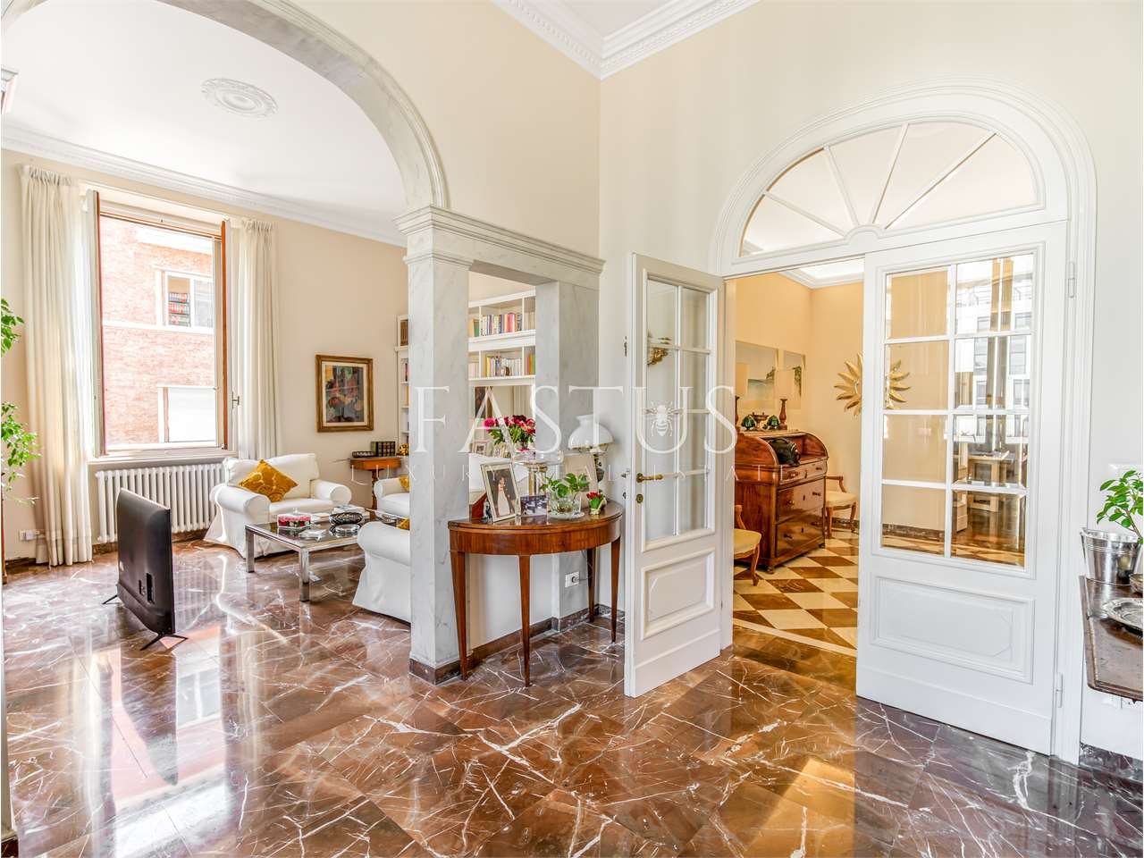 Gli ambienti sono arricchiti da pavimenti in marmo, soffitti alti e dettagli architettonici originali, sapientemente valorizzati durante la ristrutturazione integrale, eseguita con materiali di pregio. L’appartamento gode di una straordinaria luminosità naturale grazie alla favorevole esposizione su più lati.