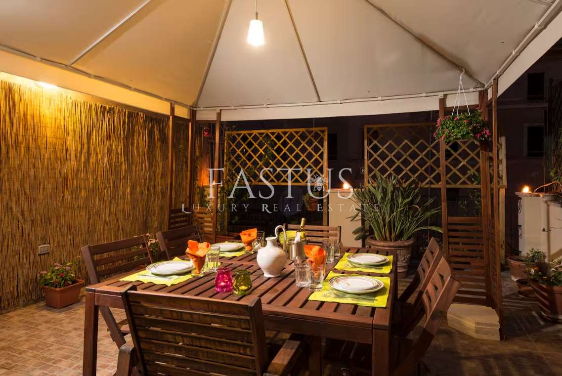 L’attico si trova in una zona tranquilla e riservata, lontano dal caos cittadino, pur essendo a soli cinque minuti a piedi dal Colosseo e dalle principali attrazioni del centro storico di Roma. Questa posizione lo rende perfetto per chi desidera vivere immerso nella storia e nella cultura della città, con tutti i servizi a portata di mano.