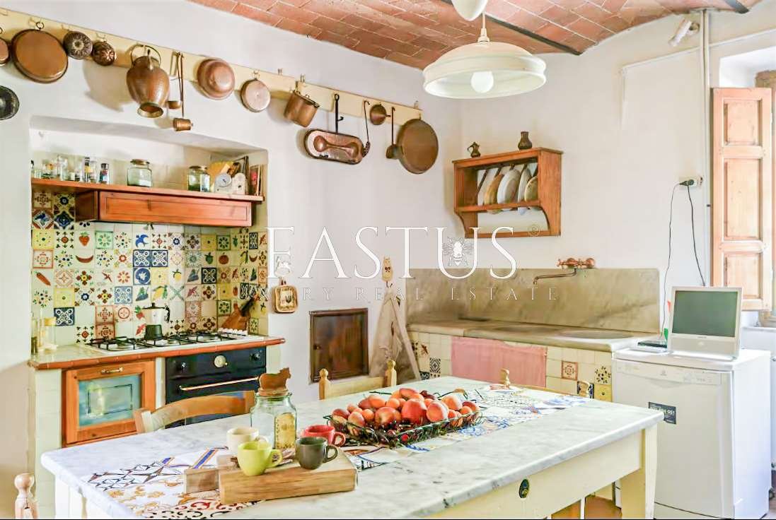 La tenuta comprende cinque ettari di terreno, di cui tre coltivati a ulivi secolari, vere e proprie sculture vegetali che raccontano la storia e la tradizione agricola del luogo. All’interno della proprietà si trovano complessivamente ventuno camere da letto e otto bagni, distribuiti tra i vari edifici. Le condizioni generali sono buone, e il complesso si presta sia a un intervento di restauro conservativo, sia a un’interpretazione contemporanea che valorizzi il carattere originale degli ambienti.