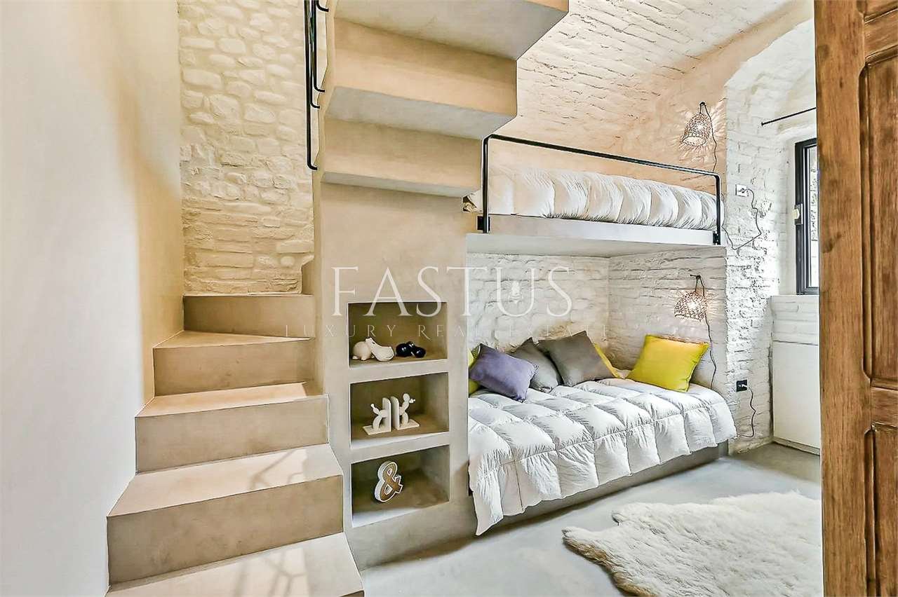 La proprietà comprende tre edifici armoniosamente distribuiti nel paesaggio: la casa principale, la struttura con la torre e l’elegante area spa. Nella residenza principale si trovano due camere matrimoniali con bagno privato, tra cui una splendida suite padronale arricchita da una terrazza riservata. La torre ospita una camera matrimoniale con bagno en-suite e due camere aggiuntive che condividono un bagno, offrendo spazi accoglienti anche per nuclei familiari. L’area spa comprende altre due camere, una matrimoniale e una doppia, unite da un ampio bagno con vasca idromassaggio.