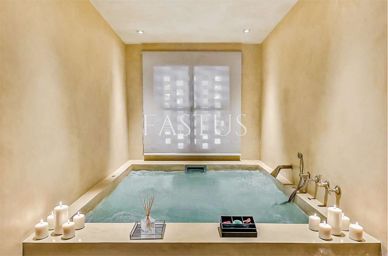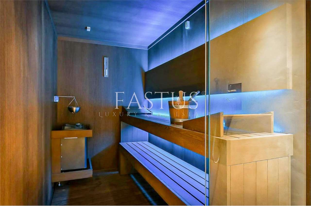 All’esterno, il paesaggio si apre attraverso una piscina a sfioro che si fonde con la valle sottostante, mentre una zona dedicata ospita Jacuzzi e sauna, creando un’oasi di relax assoluto. Il giardino, curato con eleganza naturale, alterna ulivi, alberi da frutto e angoli di quiete immersi nel verde, offrendo numerosi spazi per pranzi all’aperto e momenti di contemplazione.