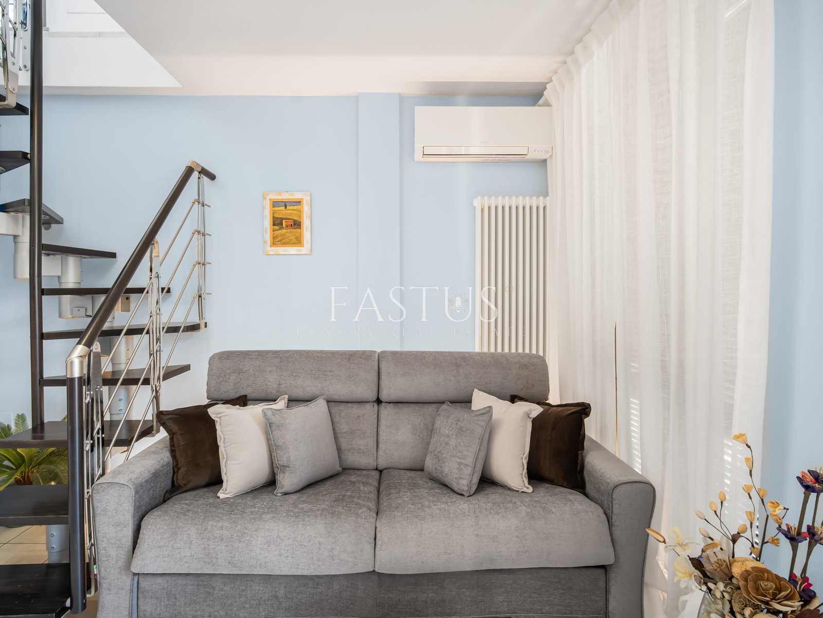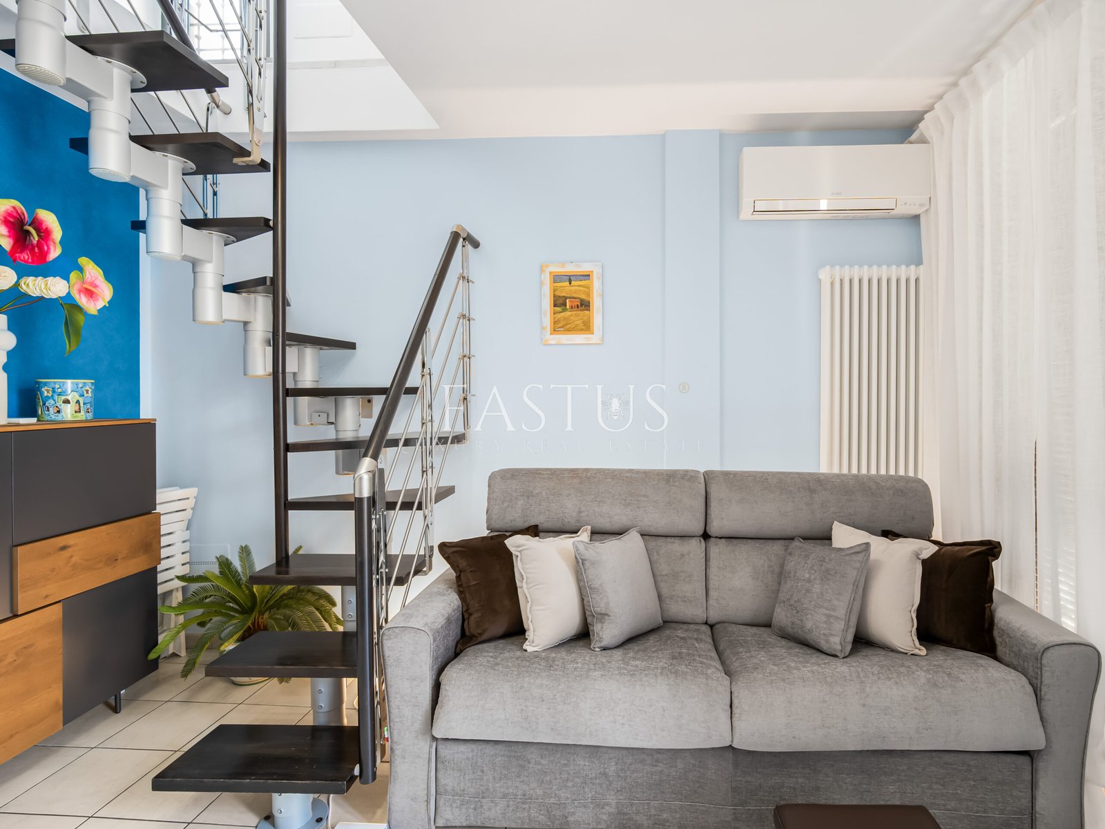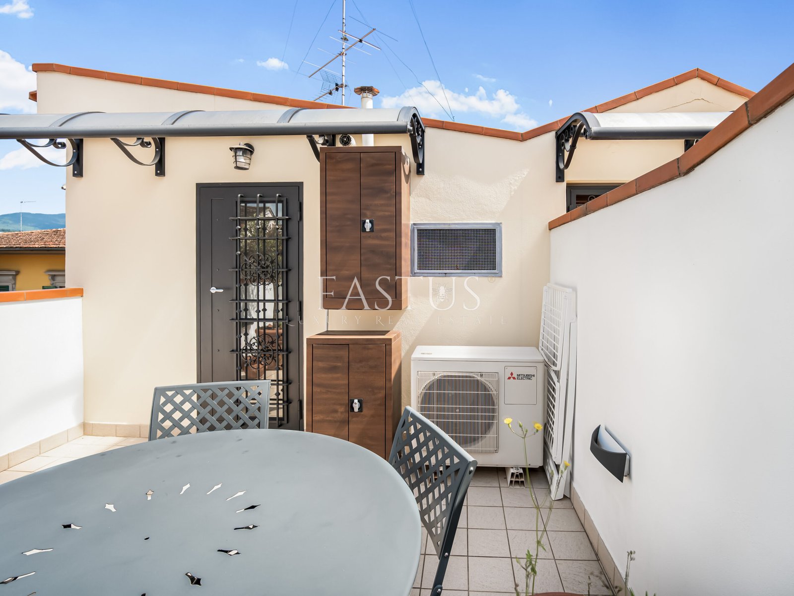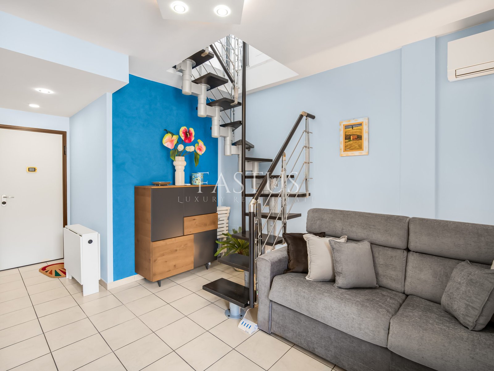 Completano la proprietà una terrazza abitabile e un ampio balcone vivibile di circa 20 mq, arredato con tavolino da esterno e impreziosito dalla presenza scenografica di un ulivo in vaso di terracotta. Il tutto arricchito da luci ambientali, che creano un’atmosfera calda e accogliente anche di sera.