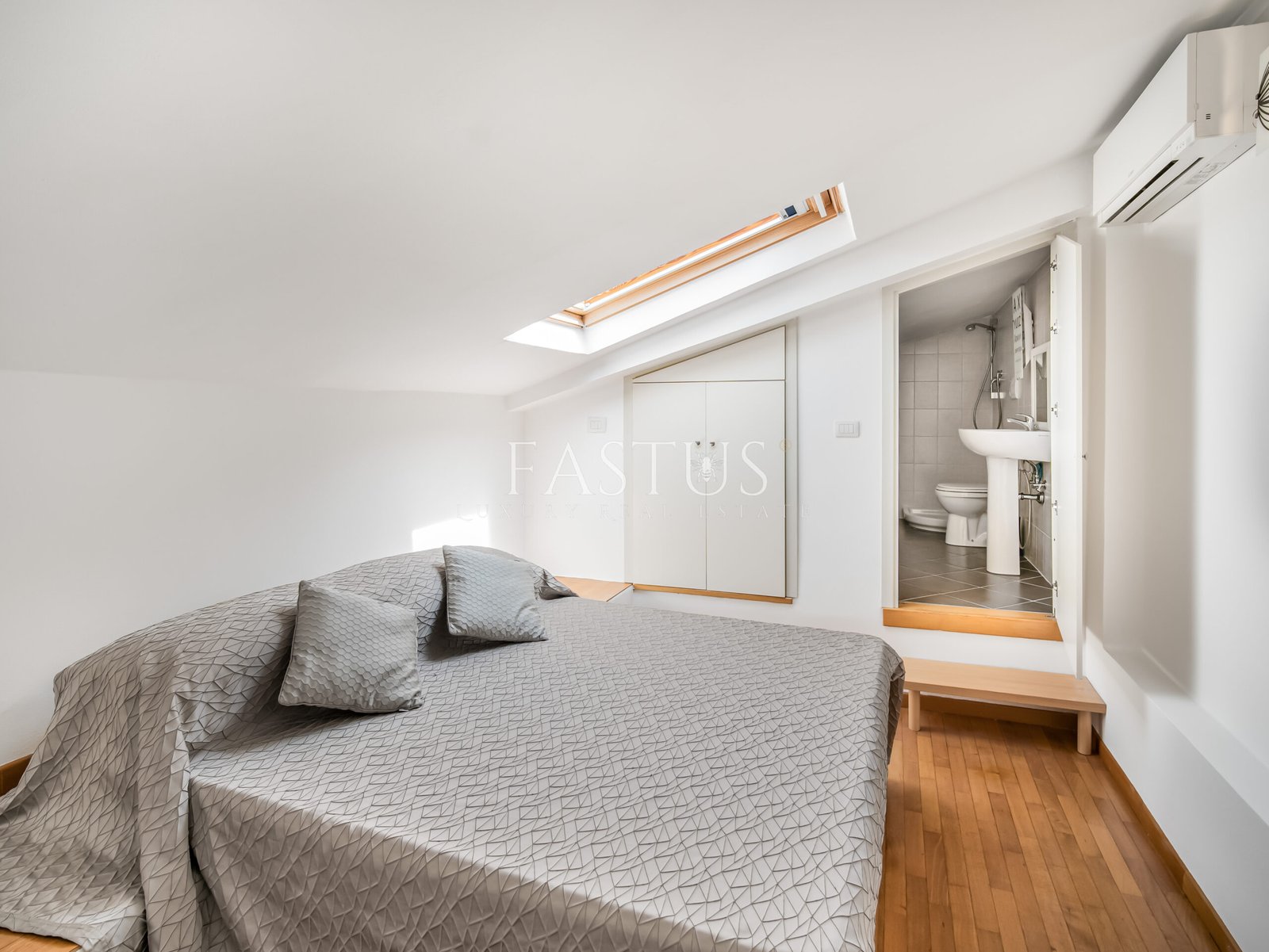 La zona notte include una camera matrimoniale con materasso e cuscini in memory foam, per un riposo eccellente, e un armadio su misura capiente. Al piano superiore si trova una seconda camera matrimoniale con bagno en suite, che assicura comfort e privacy.