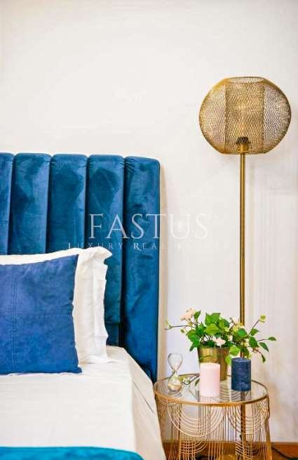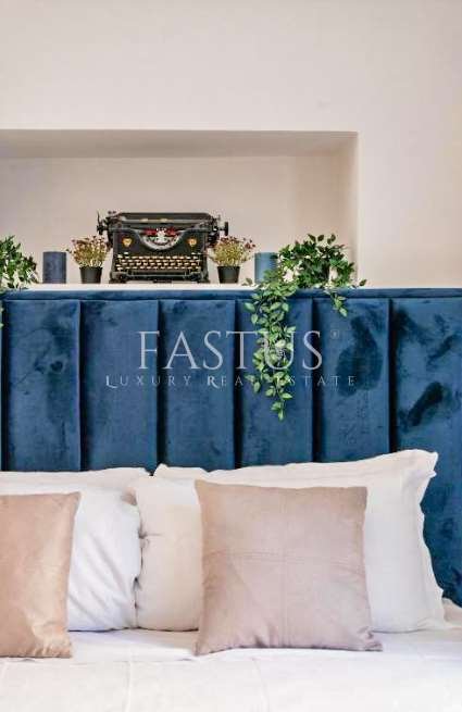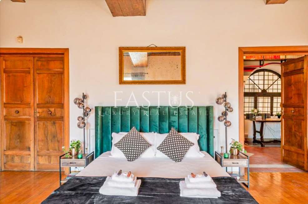 La disposizione interna è versatile e funzionale: due camere da letto, con la possibilità di ricavarne una terza secondo le esigenze del proprietario, due bagni eleganti, un’ampia sala centrale che funge perfettamente da zona pranzo o soggiorno, una cucina moderna e completamente attrezzata, una zona di servizio con lavanderia e cabina armadio per lo stoccaggio stagionale, e una camera da letto principale con bagno privato. Gli spazi interni combinano praticità e raffinatezza, offrendo ampie possibilità di personalizzazione e adattamento, senza perdere il fascino storico della residenza.