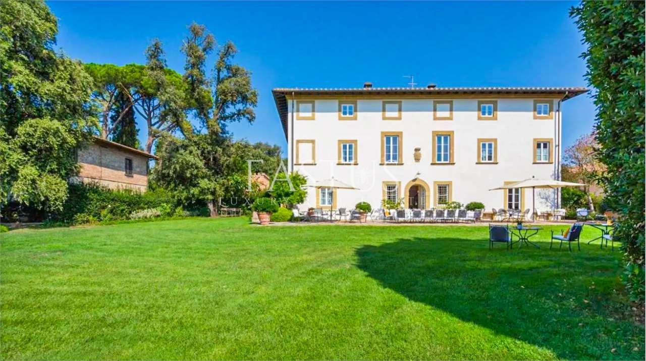 La residenza principale, di 940 metri quadrati, è un elegante edificio del XVIII secolo, completamente restaurato per preservarne il carattere storico, senza rinunciare al comfort contemporaneo e alle tecnologie più avanzate. Gli interni offrono ambienti ampi, luminosi e raffinati, con soffitti a cassettoni, pavimenti in cotto originale e dettagli architettonici che celebrano la tradizione toscana. La villa dispone di 15 camere da letto e 15 bagni, perfette per ospitare famiglie numerose, eventi esclusivi o gruppi di ospiti internazionali, con spazi studiati per garantire privacy e comfort assoluto.