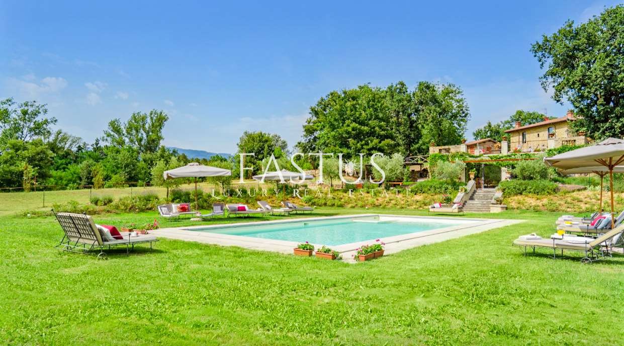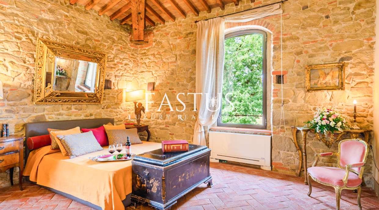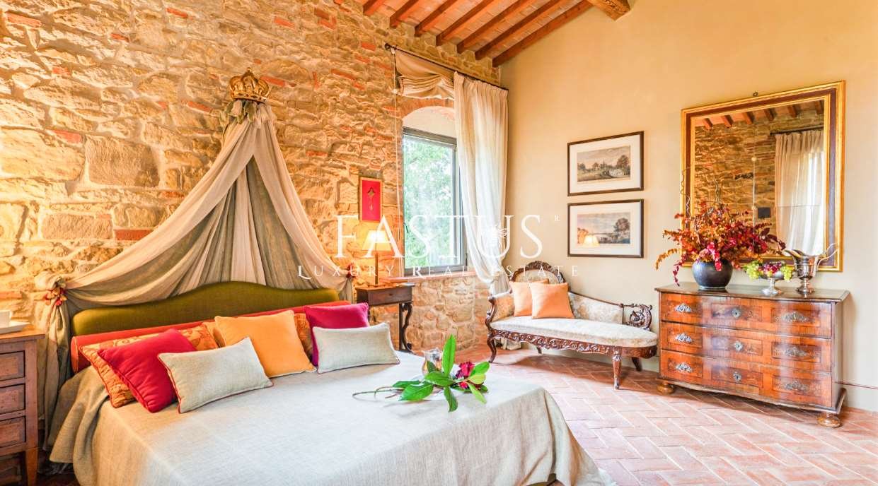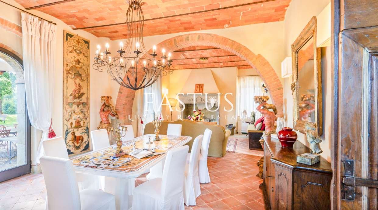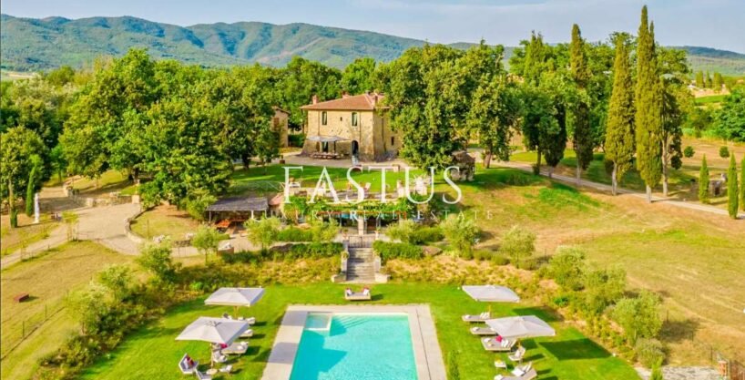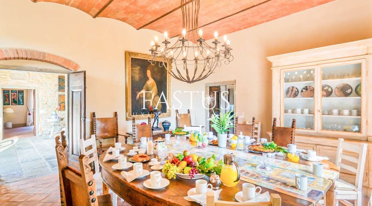 Nel cuore della campagna toscana, tra le dolci colline del Chianti e i suggestivi panorami della provincia di Arezzo, si trova questa straordinaria proprietà, che fonde armoniosamente storia, fascino e modernità. Un tempo torre di avvistamento militare, la struttura è stata trasformata in un’incantevole fattoria immersa nella natura, circondata da un parco curato e impreziosita da una splendida piscina panoramica.
