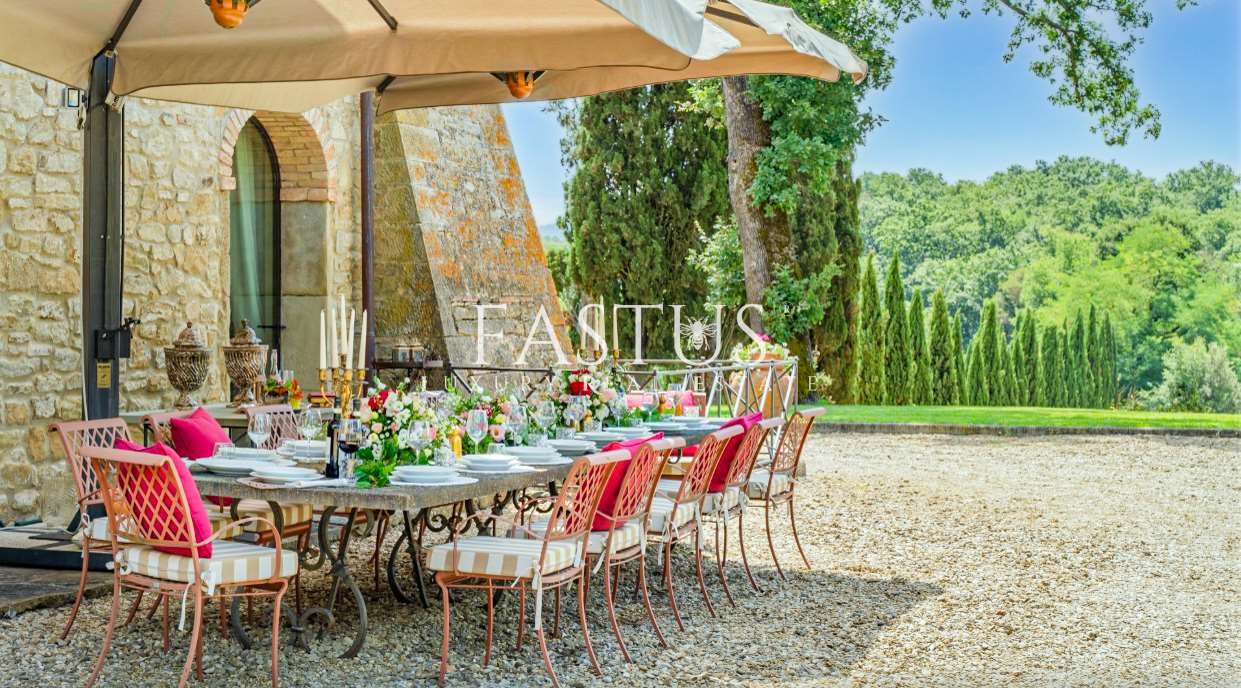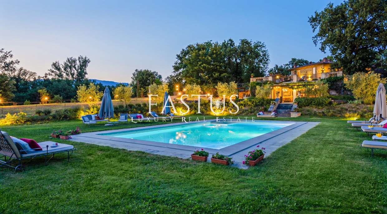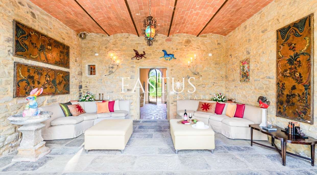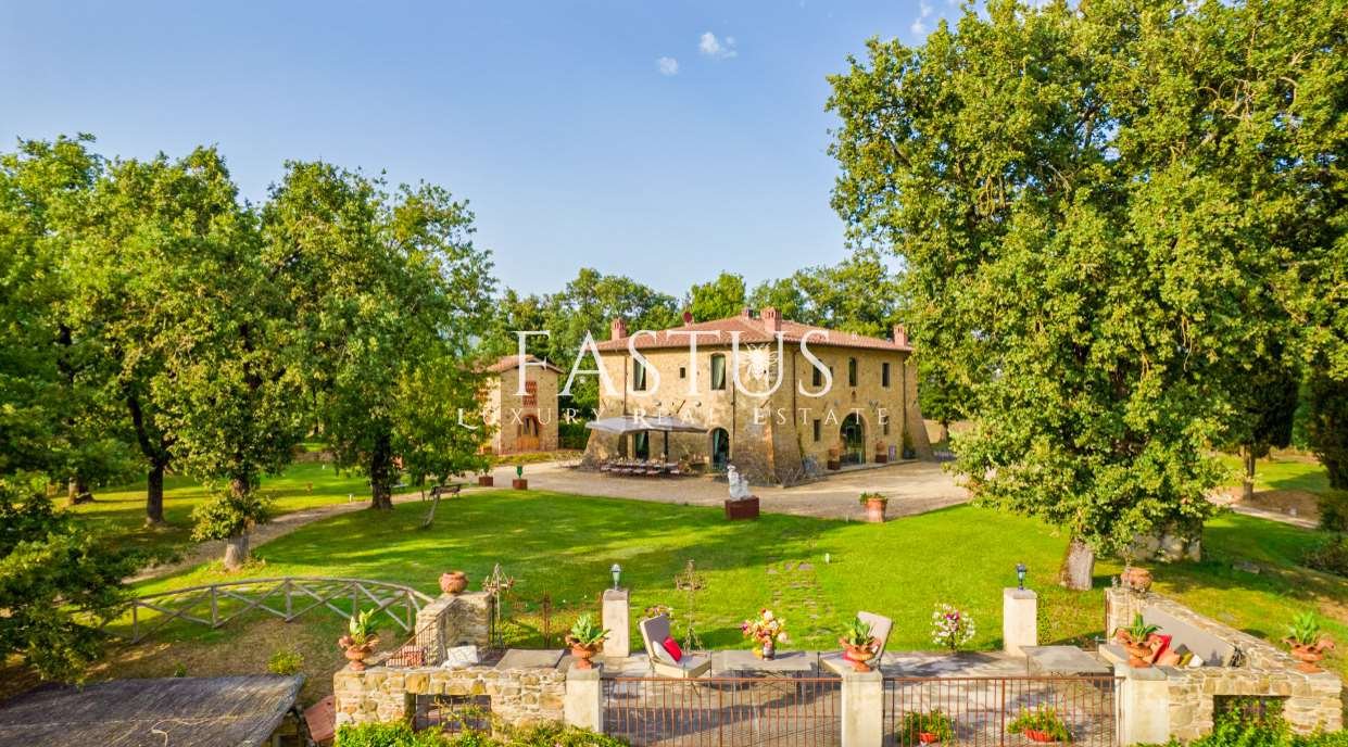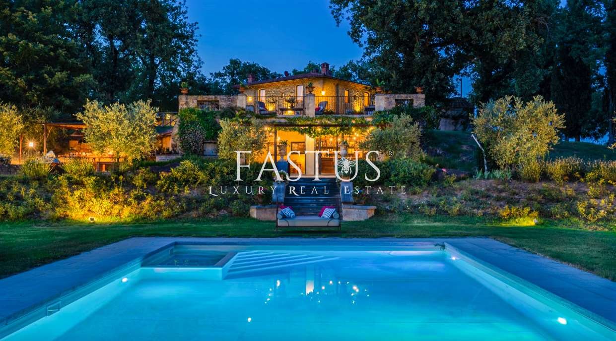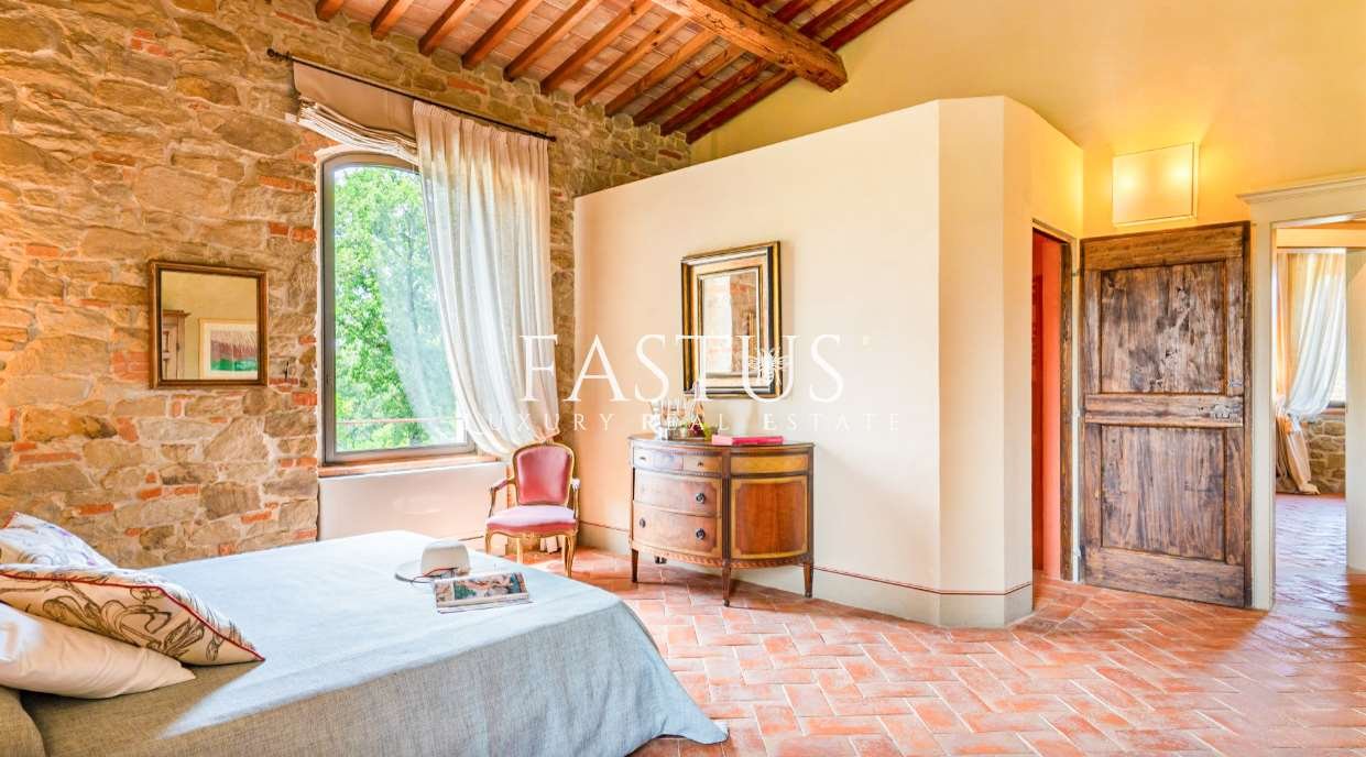 Nel cuore della campagna toscana, tra le dolci colline del Chianti e i suggestivi panorami della provincia di Arezzo, si trova questa straordinaria proprietà, che fonde armoniosamente storia, fascino e modernità. Un tempo torre di avvistamento militare, la struttura è stata trasformata in un’incantevole fattoria immersa nella natura, circondata da un parco curato e impreziosita da una splendida piscina panoramica.