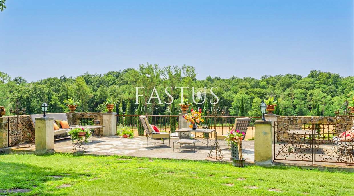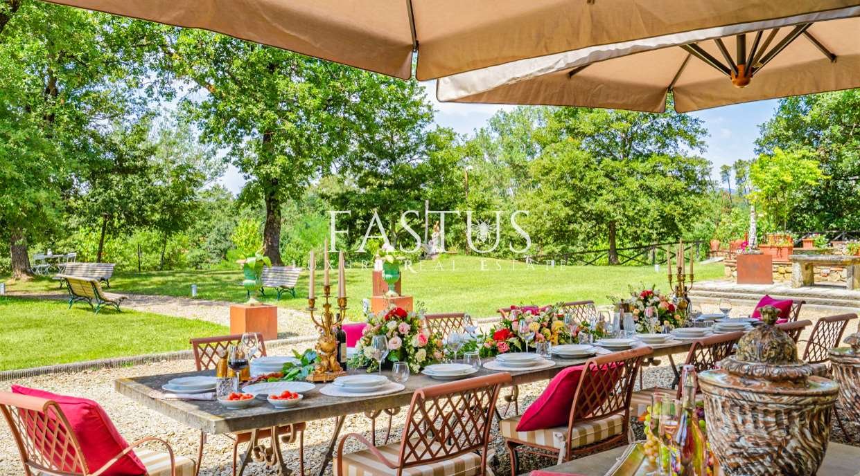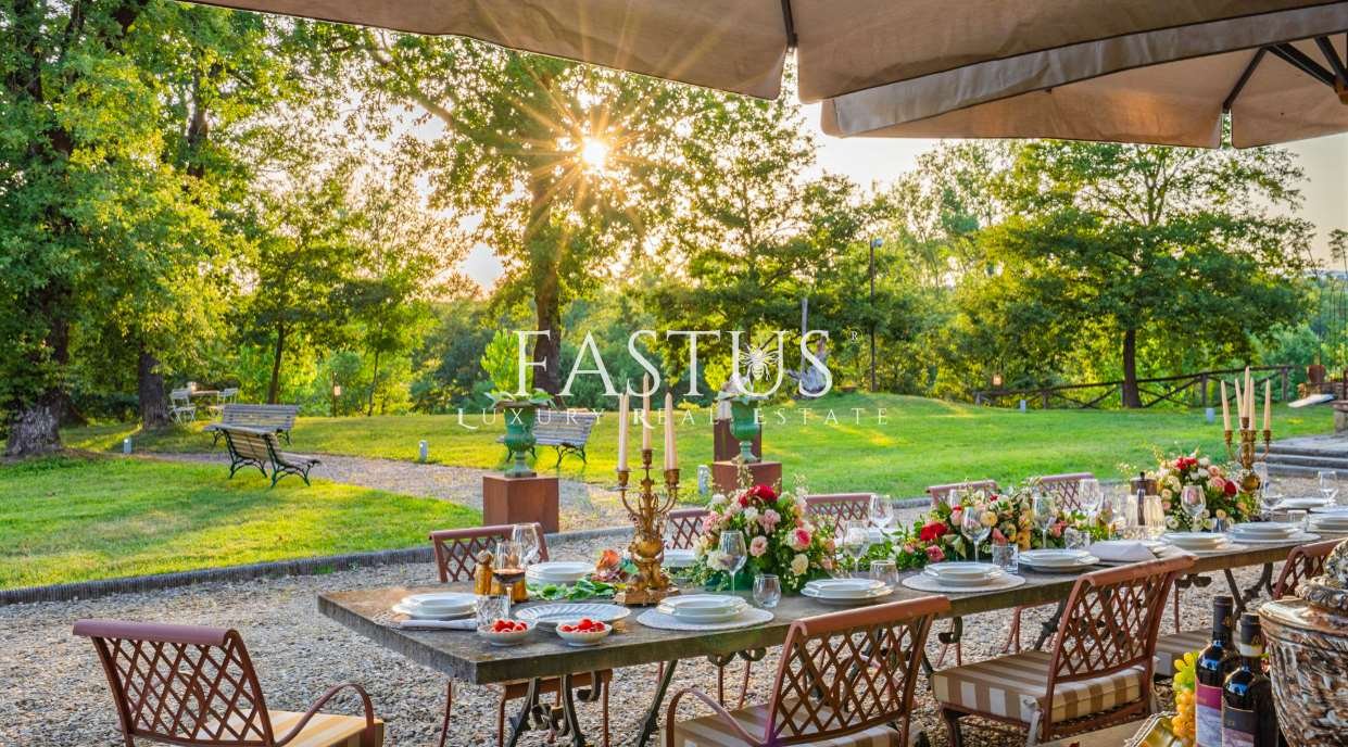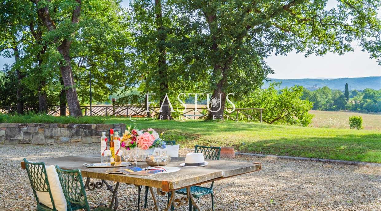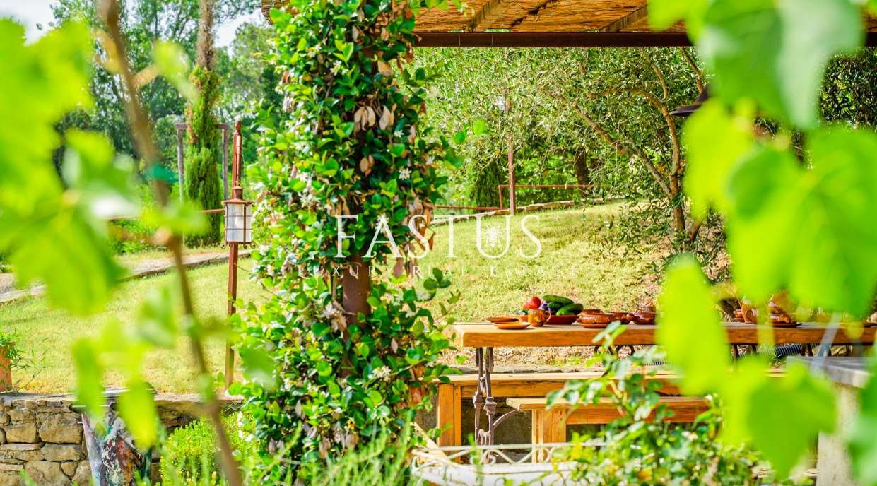 La proprietà si estende su circa 32 ettari di terreno recintato, comprendenti vigneti, boschi e un giardino paesaggistico con ampi spazi dedicati al relax. I vigneti, ristrutturati a partire dal 2002, coprono 11 ettari e combinano vitigni autoctoni come Sangiovese, Colorino del Valdarno, Foglia Tonda, Malvasia Nera e Canaiolo, con varietà internazionali quali Cabernet Sauvignon, Cabernet Franc, Merlot e Malbec, producendo vini di eccellenza.
