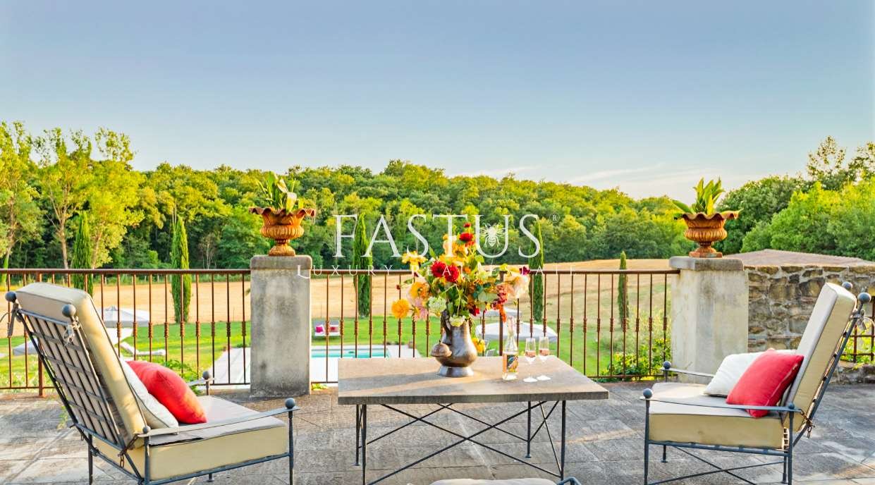 La proprietà comprende una villa principale di circa 430 m² e un blocco annesso di 200 m² suddiviso in tre unità indipendenti, oltre a una residenza separata di 480 m² a circa 800 metri dalla villa principale. La villa principale si sviluppa su due livelli: al piano terra gli spazi comuni sono ampi e luminosi, con saloni eleganti caratterizzati da camini d’epoca, due sale da pranzo raffinate e una cucina professionale estremamente funzionale. Al piano superiore la zona notte offre cinque camere matrimoniali, ciascuna con bagno privato, garantendo comfort e privacy agli ospiti.