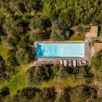 La piscina domina la valle circostante, offrendo un’esperienza di assoluta tranquillità, mentre una struttura in pietra con pergolato ospita una cucina esterna con barbecue e forno a legna, affiancata da un ampio spazio coperto di circa 200 m², ideale per eventi e cene all’aperto.