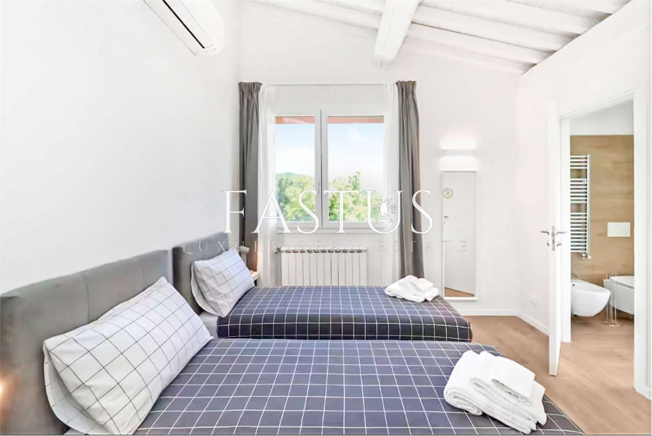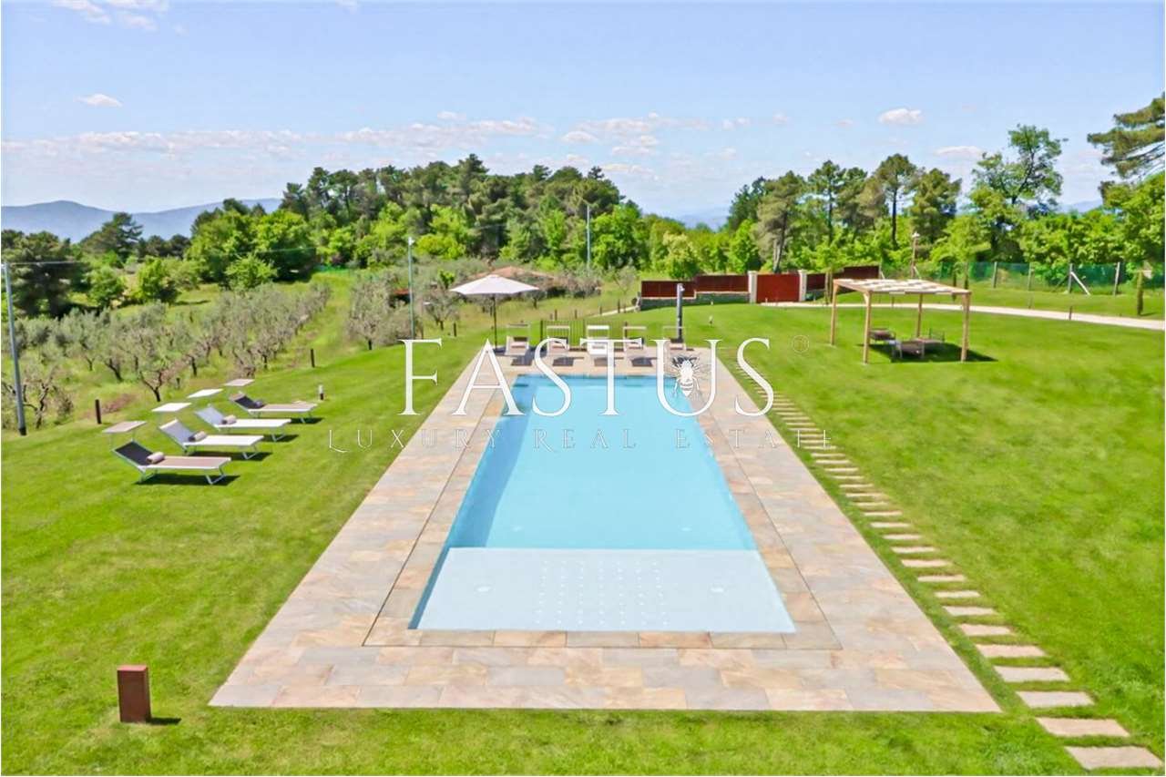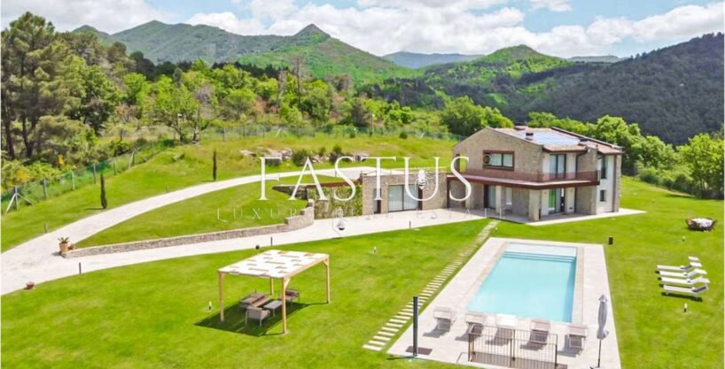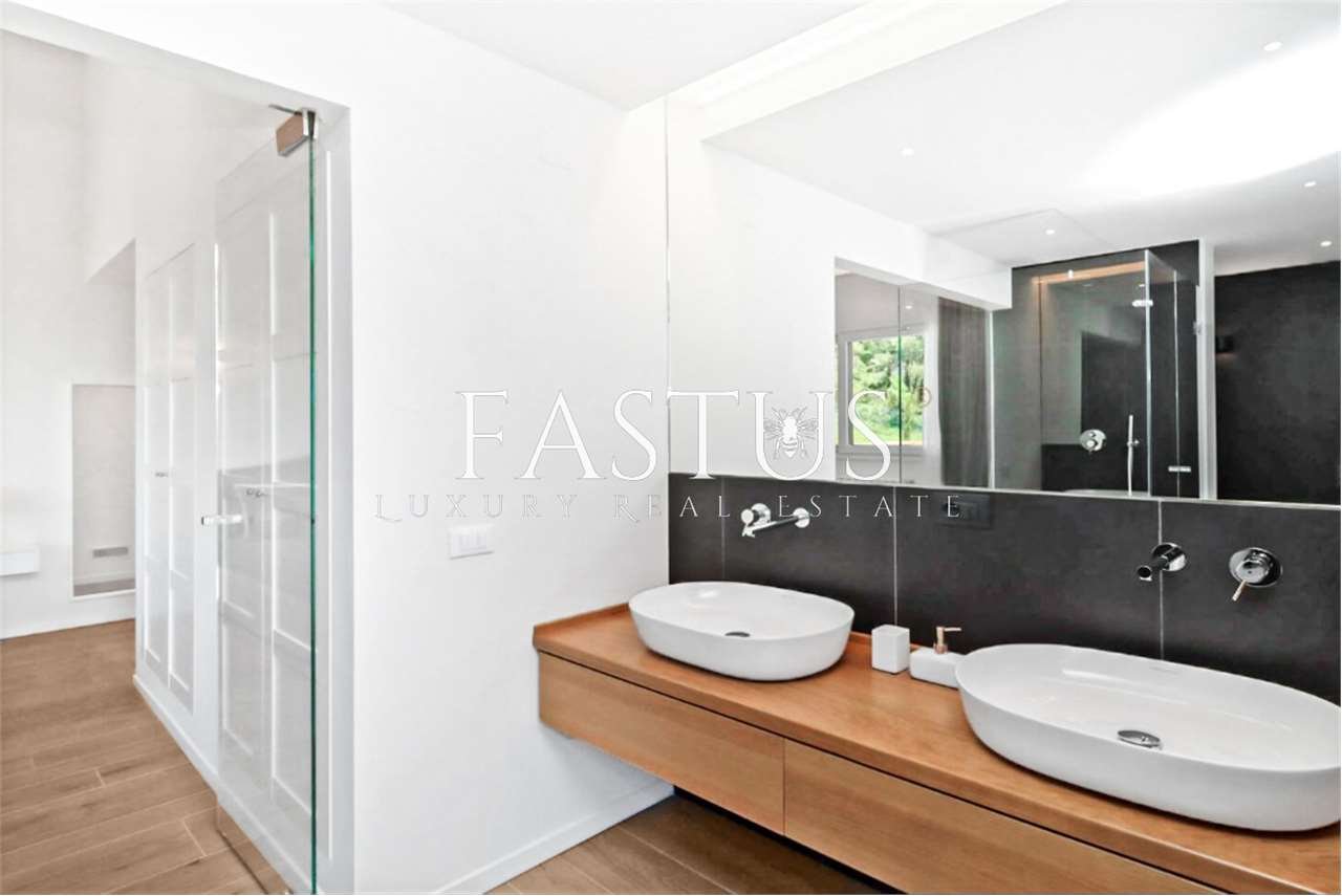 In posizione dominante, immersa in un contesto esclusivo e riservato circondato dal verde, proponiamo in vendita una splendida villa indipendente su quattro lati, finemente ristrutturata con materiali di alto pregio.