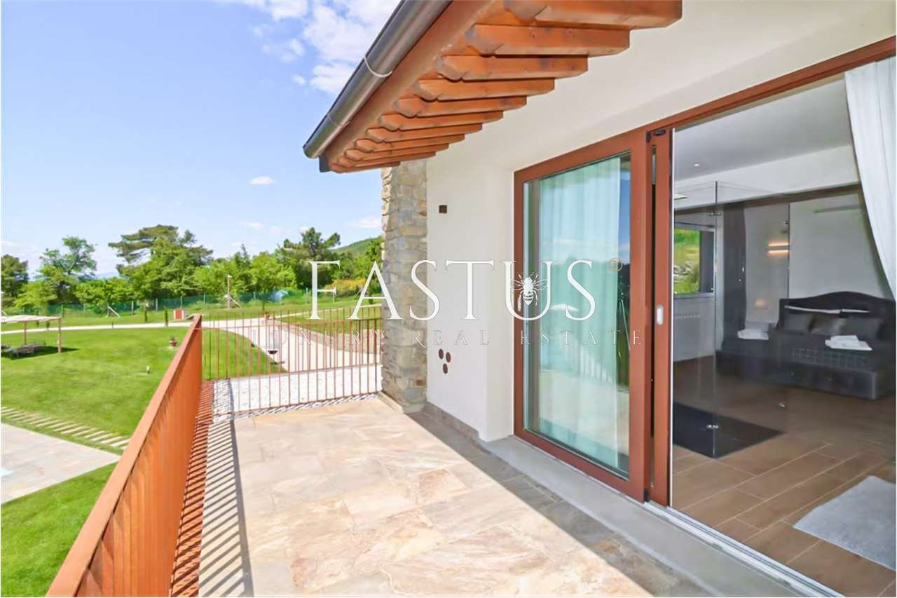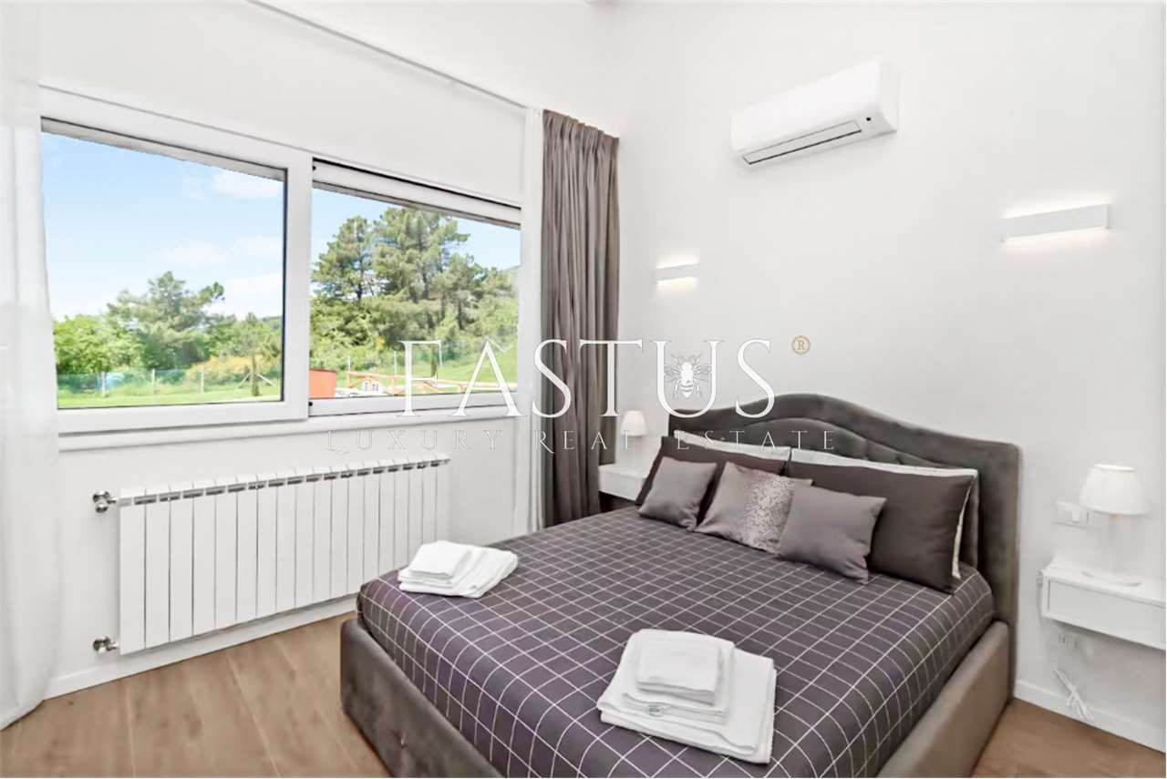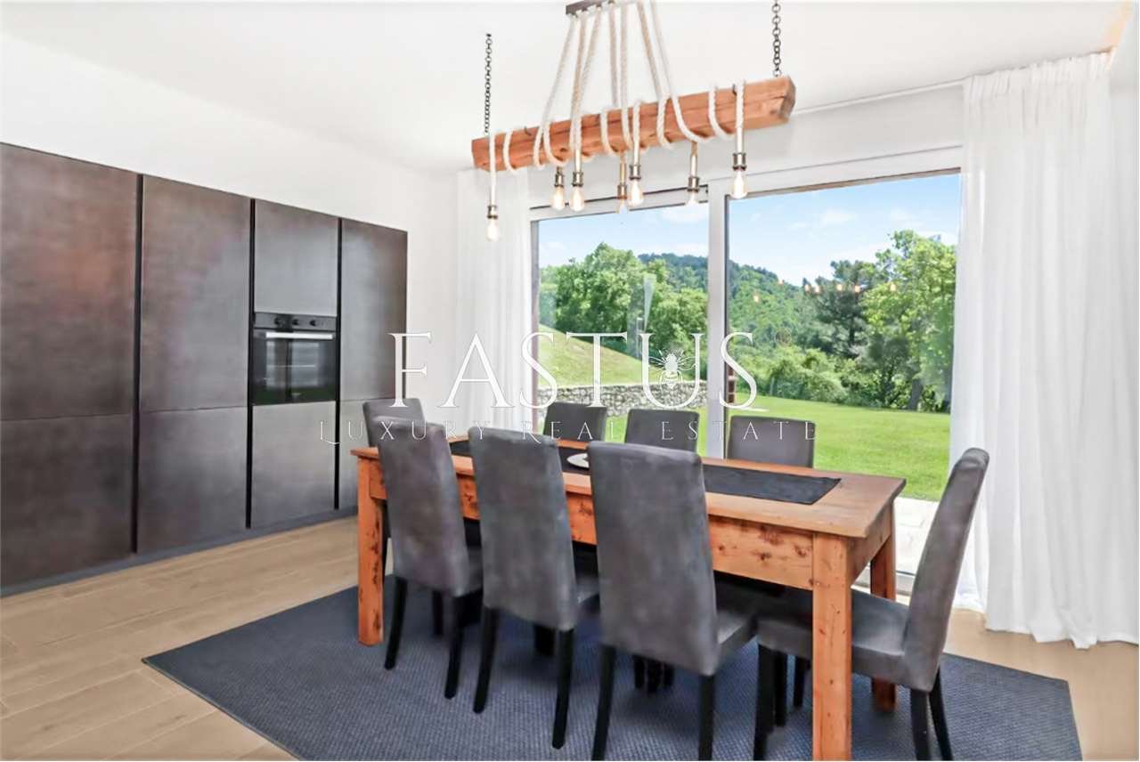 In posizione dominante, immersa in un contesto esclusivo e riservato circondato dal verde, proponiamo in vendita una splendida villa indipendente su quattro lati, finemente ristrutturata con materiali di alto pregio.