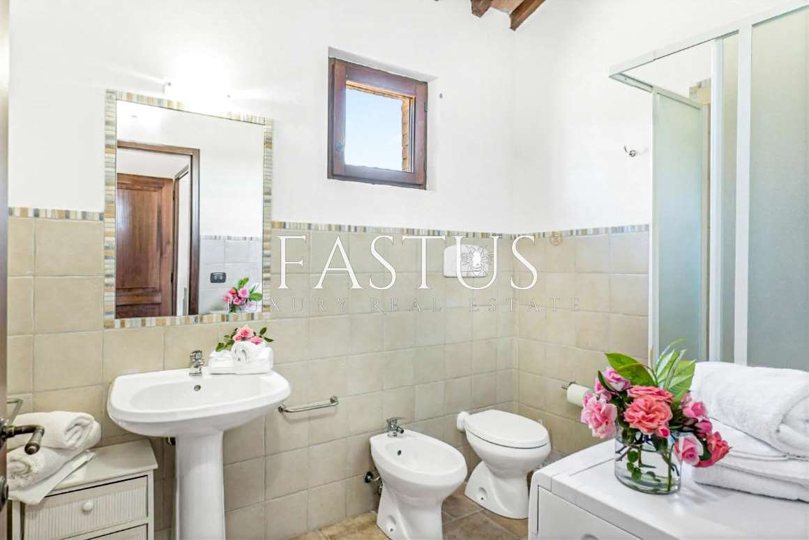 Il complesso immobiliare comprende una villa padronale suddivisa in due appartamenti indipendenti, oltre a una graziosa dépendance che ospita anch’essa due appartamenti, per una superficie complessiva interna di circa 1.800 metri quadrati. Gli ambienti, curati nei minimi dettagli, riflettono il fascino rustico toscano, con materiali originali e finiture di pregio.