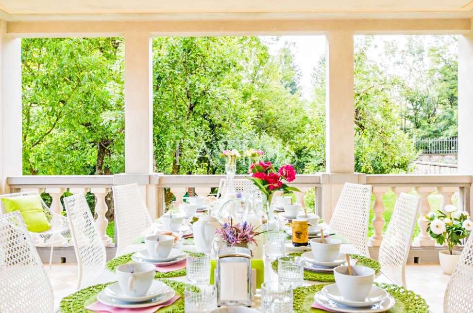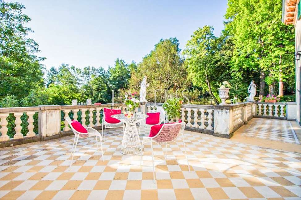 La villa dispone di ampie aree dedicate agli ospiti e agli eventi, tra cui una “limonaia” storica con due sale reception. Al piano terra, una sala con tavolo imperiale ottocentesco accoglie fino a 24 persone, mentre al secondo piano una sala panoramica con grandi finestre e soffitti con travi in legno offre scenari spettacolari sulla valle circostante. Questi spazi sono perfetti per feste private, ricevimenti o riunioni esclusive, combinando funzionalità e raffinatezza storica.